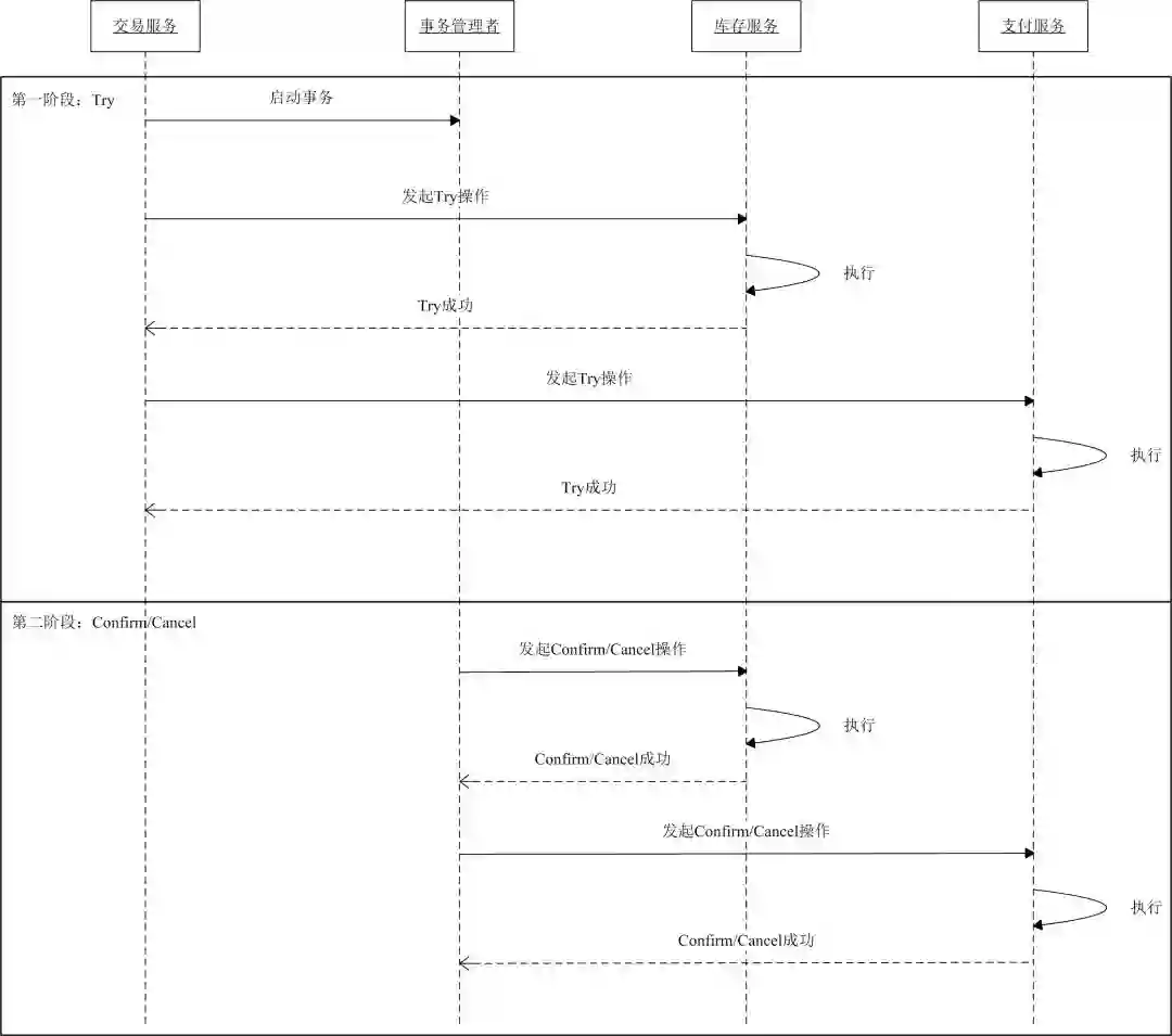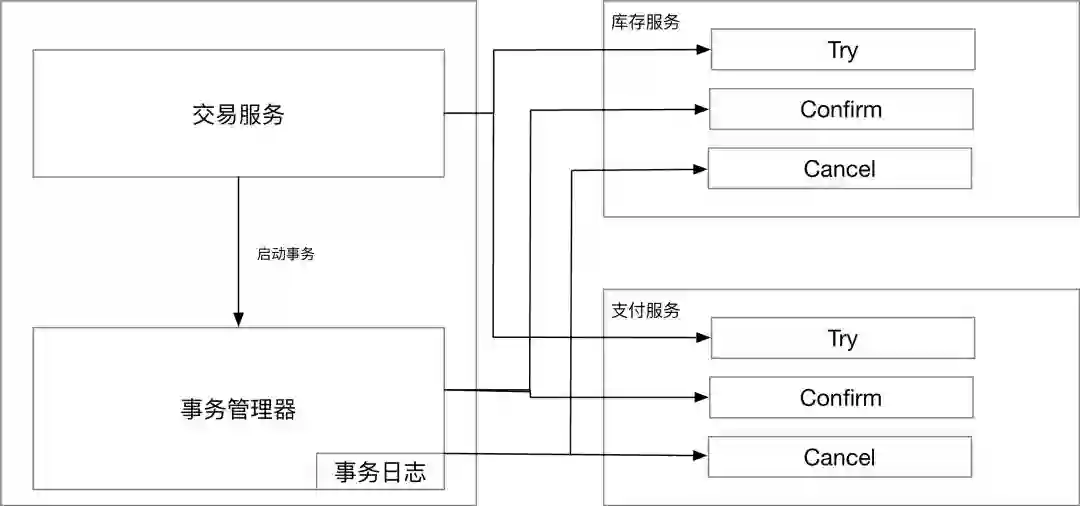 // try 方法(confirmMethod = "confirmRecord", cancelMethod = "cancelRecord", transactionContextEditor = MethodTransactionContextEditor.class)public String record(TransactionContext transactionContext, CapitalTradeOrderDto tradeOrderDto) {}// confirm 方法public void confirmRecord(TransactionContext transactionContext, CapitalTradeOrderDto tradeOrderDto) {}// cancel 方法public void cancelRecord(TransactionContext transactionContext, CapitalTradeOrderDto tradeOrderDto) {}