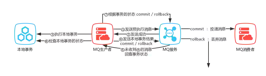 Apache RocketMQ 4.3 版本正式支持分布式事务消息。RocketMQ 事务消息设计主要解决了生产者端的消息发送与本地事务执行的原子性问题,换句话说,如果本地事务执行不成功,则不会进行 MQ 消息推送。那么,聪明的你可能就会存在疑问:我们可以先执行本地事务,执行成功了再发送 MQ 消息,这样不就可以保证事务性的?但是,请你再认真的思考下,如果 MQ 消息发送不成功怎么办呢?事实上,RocketMQ 对此提供一个很好的思路和解决方案。RocketMQ 首先会发送预执行消息到 MQ,并且在发送预执行消息成功后执行本地事务。紧接着,它根据本地事务执行结果进行后续执行逻辑,如果本地事务执行结果是 commit,那么正式投递 MQ 消息,如果本地事务执行结果是 rollback,则 MQ 删除之前投递的预执行消息,不进行投递下发。注意的是,对于异常情况,例如执行本地事务过程中,服务器宕机或者超时,RocketMQ 将会不停的询问其同组的其他生产者端来获取状态。