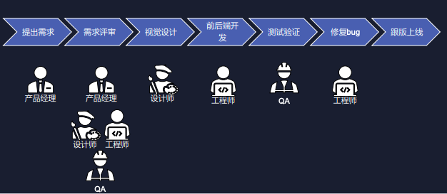 移动端常规页面开发流程包括:提出需求、需求审核、视觉设计、前后端开发、测试验证、修复 Bug、跟版上线七步,涉及到产品经理、设计师、工程师、QA 等角色。