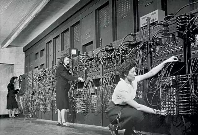 1946年2月,公交车那么大的笨重的ENIAC,在一次媒体发布会上,被展示给媒体,记者们对它的描述是“电子大脑”“数学弗兰肯斯坦”“天气预报控制机”、以及“巫师”。
