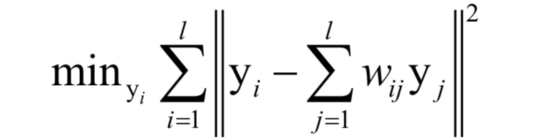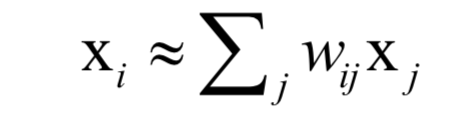 每个数据点和它的邻居位于或者接近于流形的一个局部线性片段上,即可以用它邻居点的线性组合来重构,组合系数刻画了这些局部面片的几何特性: