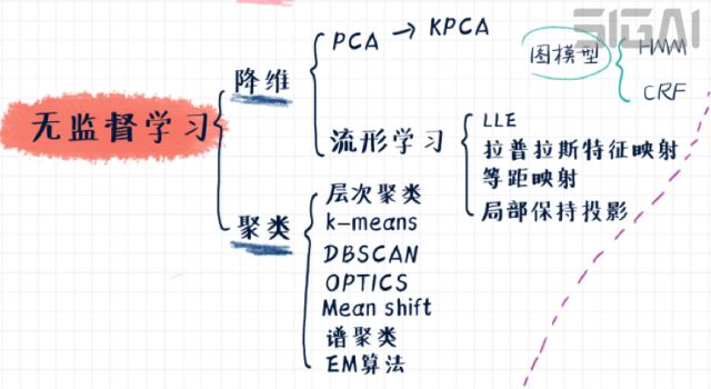 接下来说无监督学习,它可以分为数据降维算法和聚类算法两大类。演变关系如下图所示: