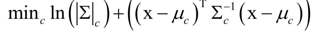 训练时的目标是确定p(x|y)的参数,一般使用最大似然估计。如果假设样本特征向量的各个分量之间相互独立,则称为朴素贝叶斯分类器。如果假设特征向量x服从多维正态分布,则称为正态贝叶斯分类器。正态贝叶斯分类器的预测函数为: