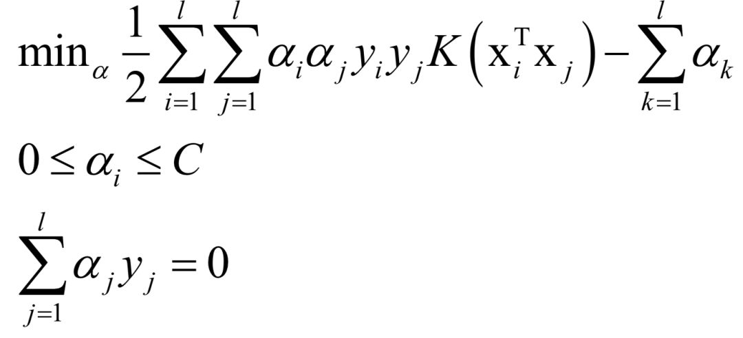 这是一个凸优化问题,可以得到全局最优解,求解时一般采用SMO算法,这是一种分治法,每次挑选出两个变量进行优化,对这两个变量的优化问题求公式解。优化变量的选择使用了KKT条件。