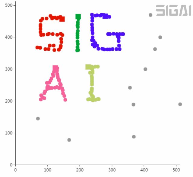 DBSCAN算法是一种基于密度的算法,对噪声鲁棒。它将簇定义为样本密集的区域,算法从一个种子样本开始,反复向密集的区域生长,直至到达边界。