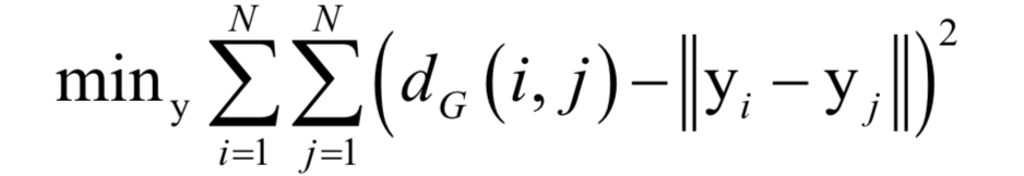 假设非线性映射将向量从D维空间的x映射为d维空间的y。每个点在d维空间中的坐标由下面的最优化问题确定: