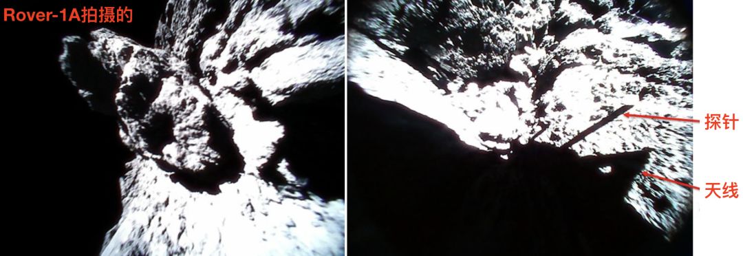 ↓ Rover-1A在9月23日拍摄的“龙宫”照片里还拍到了自己的影子,天线和探针清晰可见