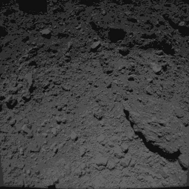 ↓ 9月21日9月21日13:04(日本时间),隼鸟2号距离“龙宫”表面64米处连续拍摄的“龙宫”高清照,这也是“龙宫”目前为止最高分辨率的一张照片。