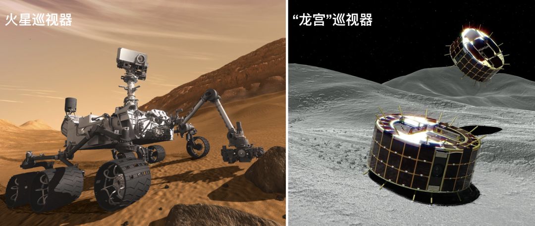 (左)好奇号,来源:NASA;(右)Minerva-II1-1A(远处)和Minerva-II1-1B(近处),来源:JAXA
