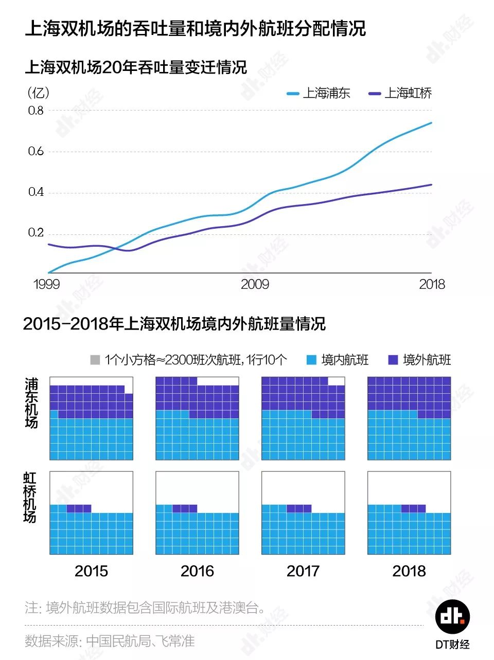影响会体现在哪些方面呢?我们不妨先以前辈的经验作为参照,梳理一下上海的双机场发展情况,以作对比。
