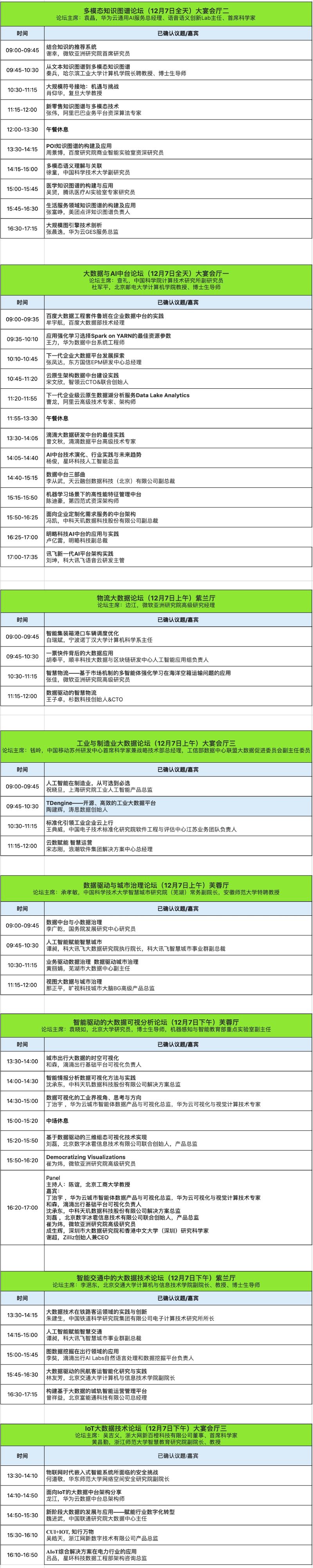 12 月 6 日-7 日, 主办方精心策划了 14 场技术和行业论坛,包括新一代数据库转型、人工智能赋能金融科技、AutoML大数据自动化机器学习技术与系统、大数据时代的因果推断、大数据安全和治理、多模态知识图谱、大数据与AI中台、物流大数据、工业与制造业大数据、数据驱动与城市治理、智能驱动的大数据可视分析、IoT大数据技术、智能交通中的大数据技术、Top 10大数据应用最佳案例实践等主题多样化组合选择的空间,让参会者制定专属自己的参会攻略。