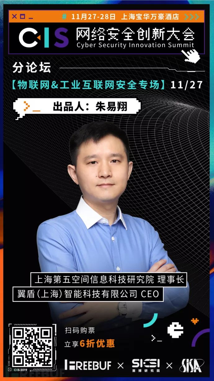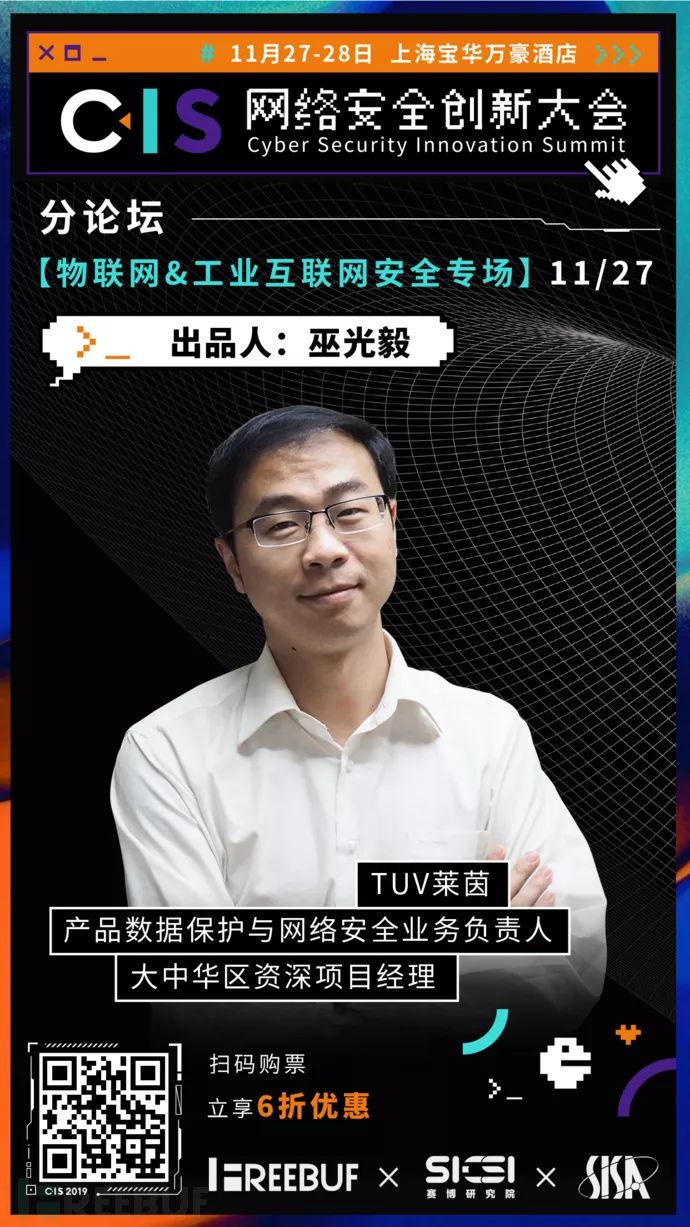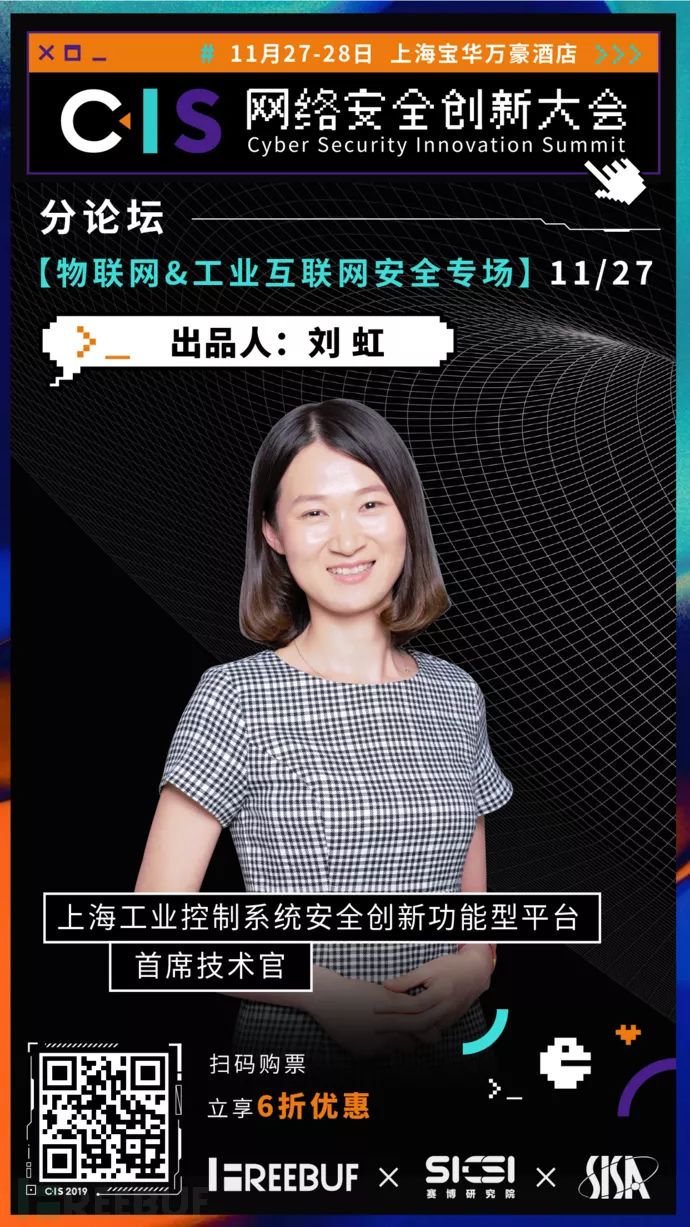 CIS 2019网络安全创新大会(官网:cis.freebuf.com),我们邀请上海工业控制系统安全创新功能型平台首席技术官刘虹博士、上海第五空间信息科技研究院理事长朱易翔和TUV莱茵产品数据保护与网络安全业务负责人巫光毅共同担任「物联网&工业互联网安全专场」出品人,与大家深入探讨物联网和工业互联网安全的应对措施。
