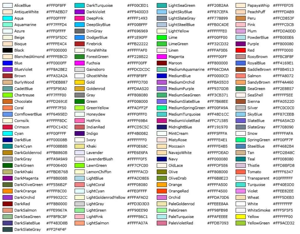 或者 2 个不同的名字代表的其实是同一种色彩,比如 Aqua(00FFFF)和 Cyan(00FFFF)或者 Fuchsia(FF00FF)和 Magenta(FF00FF)。不幸的是,Colors 帮助页面是按字母顺序显示色彩的,如果你知道名字就很容易找到它们,但要分辨出哪些色彩彼此相近或相配却非常困难。