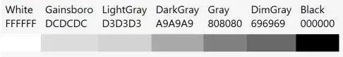 我不知道你们是什么情况,但我自己在过去多年中都因为.NET 色彩(Colors)类中可用的色彩数量有限而头痛不已,为此我试图用 ColorPickers 获得匹配的色彩并努力去理解各种色彩模型。为了让我的生活轻松一些,我写了几个小方法可以把任何色彩改成黑白的,还有一个方法可以混合色彩。有了这些方法后,我得到了匹配度很高的色彩,有点像 GradientBrush 中的渐变效果。