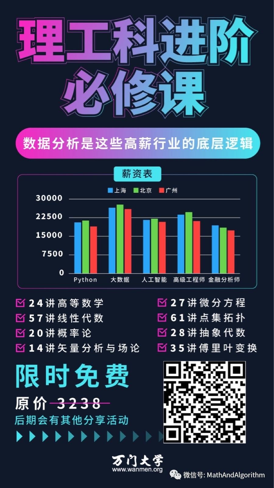 在大数据、人工智能、前端开发、金融分析等行业中,20W的平均起薪,三四十万的年薪也早已屡见不鲜,而数学正是这些高薪行业的底层逻辑。