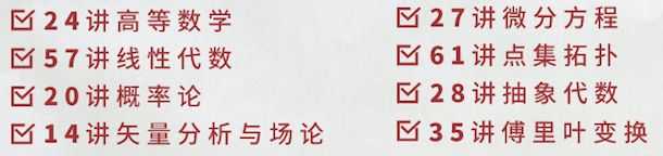 本系列课程全面覆盖基础数学学科的各专业、计算机科学、概率统计、金融学等与数学相关的或交叉的、高新技术学科的数学知识点。