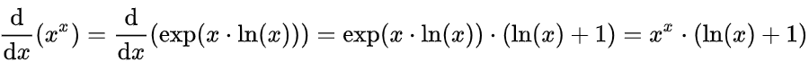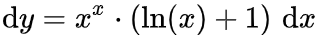 而「彳戍=天^天(一丄訥天)彳天」就是 「dy = x^x (1+lnx) dx」,确实可以由上面那个式子整理得到。