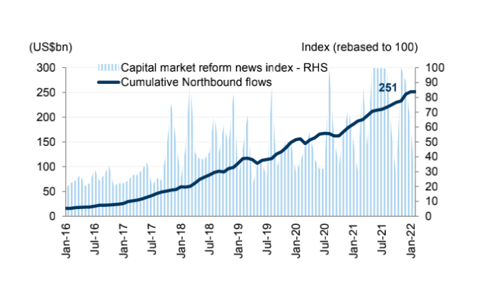 随着外资进入制度改革推进,北向资金屡创新高,来源:高盛
