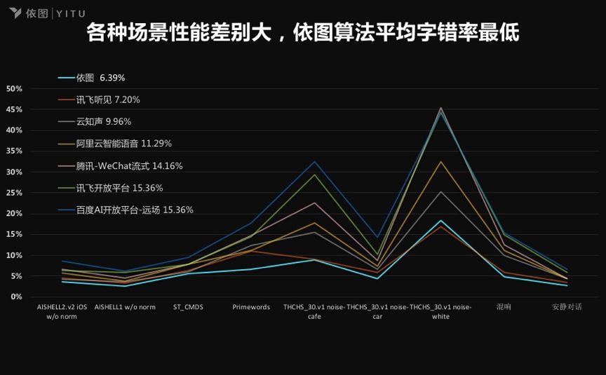 依图此次推出的中文语音识别算法,与业内原有领先者相比,不仅大幅提升了识别准确率,而且在单个算法模型上,有极为出色的多场景适用性表现。