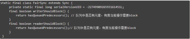 公平下的Sync实现策略是所有获取的读锁或者写锁的线程都需要入队排队,按照顺序依次去尝试获取锁。