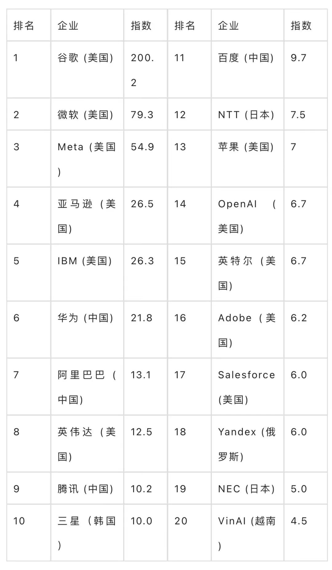 由于篇幅有限,在表格中只列全球前20个AI研究排名的大学。部分大学表格内是缩写(不一定严谨),后附全称。