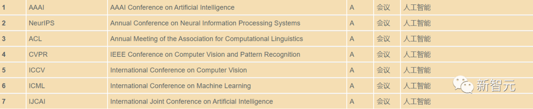 在中国计算机学会(CCF)发布的「中国计算机学会推荐国际学术会议和期刊目录」上,在人工智能子类别下共列出了7个A类会议,ICML和NeurIPS均榜上有名。