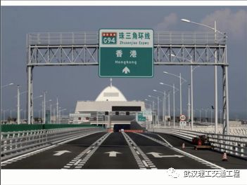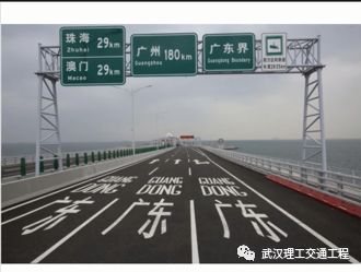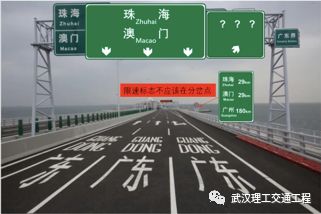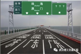 第二个照片,这张也是港珠澳的,整个信息板上到底想表达什么内容并不清晰。首先,上面珠海澳门29公里,右边横过来广州180公里,然后广东界,底下又写了广东,画了个箭头,要告诉其他人什么内容?非常不清楚。其实这里面哪些东西是必要的,哪些东西是不必要的,应该区分一下,走过信息板的时候传达了什么信息,这就是做交通工程的一个大项。