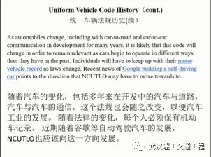 所以基本上就是,生成了两个不同的分支,但是两个又是互相要有互换信息的。这个uniform vehicle code不知道百度能不能查到,你可以试试,这本现在是免费下载,原来是一般是卖100美元一本。因为他这个编辑是一个非营利的组织,就靠卖这个书来维持它,每隔10年或者20年来更新一次,以前更新的还挺频繁的,后来最后一版是2000年版,但是他们还说还要更新,还是想办法找其他的经费来源来更新。