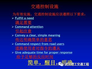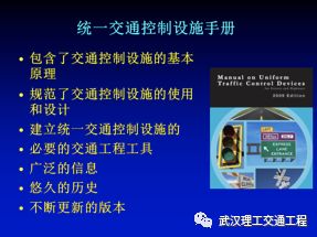 交通控制设施有个定义就是,什么是交通控制设施,现在已经好多了,我几年前回来还问那个学生,我说你们说什么是交通控制设施?基本上十个有九个跟我说信号灯。其实交通工程设施一般来说分类就是标志标线信号灯这三大类,现在把这个交叉口路缘石也加在里面,但是那个还不真算,在这个交通控制设施里边,授权机构设置管辖范围。