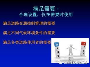 第一条需要,满足什么需要?就是说你要去满足道路管理控制,满足不同气候,满足各类条件使用者的需要,你给他的信息不能太多了,不能太少了,就是给了他正好需要的时候。就像我到食堂去买饭,我想吃面条,你非得跟人家说了一大堆,面条有各类的,你点菜的时候,选择就有困难,所以那个信息应该正合适。