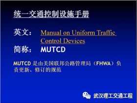 MUTCD图里面几个单词的简写,中文里翻译为统一交通控制设施手册,目前最新版本是2009年出版的。