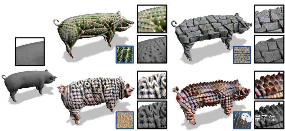 比如就给一张仙人掌的照片,也能直接把原始灰色的3D小猪变成“仙人掌风格”: