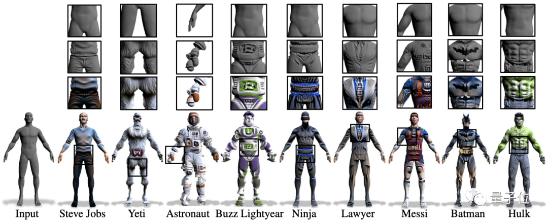 再比如下面这个,不管是变雪人、忍者、蝙蝠侠、绿巨人,还是乔布斯、梅西、律师……衣服的褶皱、配饰、肌肉、发丝……等细节都可以生动呈现。