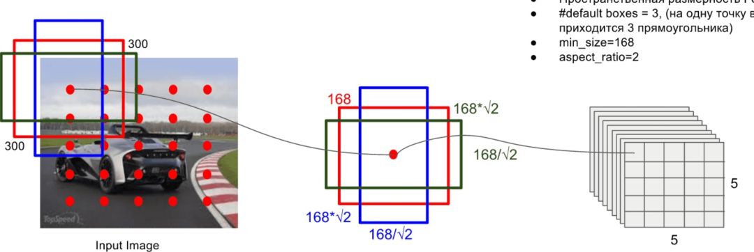 在Yolo中,每个单元预测多个边界框,但是其都是相对这个单元本身(正方块),但是真实目标的形状是多变的,Yolo需要在训练过程中自适应目标的形状。而SSD和Faster R-CNN相似,也提出了anchor的概念。卷积输出的feature map,每个点对应为原图的一个区域的中心点。以这个点为中心,构造出6个宽高比例不同,大小不同的anchor(SSD中称为default box)。每个anchor对应4个位置参数(x,y,w,h)和21个类别概率(voc训练集为20分类问题,在加上anchor是否为背景,共21分类)。