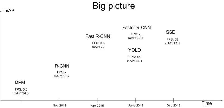 对于图片中比较小的物体,效果很差。这其实是所有目标检测算法的通病,SSD对它有些优化,我们后面再看。