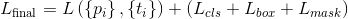 在Mask R-CNN中的RoI Align之后有一个"head"部分,主要作用是将RoI Align的输出维度扩大,这样在预测Mask时会更加精确。在Mask Branch的训练环节,作者没有采用FCN式的SoftmaxLoss,反而是输出了K个Mask预测图(为每一个类都输出一张),并采用average binary cross-entropy loss训练,当然在训练Mask branch的时候,输出的K个特征图中,也只是对应ground truth类别的那一个特征图对Mask loss有贡献。 Mask R-CNN的训练损失函数可以描述为: