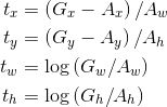 对于目标框一般使用四维向量来表示(x,y,w,h)(x,y,w,h) ,分别表示目标框的中心点坐标、宽、高,我们使用AA 表示原始的foreground anchor,使用GG 表示目标的ground truth,我们的目标是寻找一种关系,使得输入原始的Anchor AA 经过映射到一个和真实框GG 更接近的回归窗口G′G′ ,即: