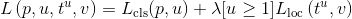 上式中u>=1表示RoI边框修正是对于非背景的RoI而言的,实验中,上式的λ取1。在训练分类器和RoI边框修正时,步骤如下所示:1) 首先通过RPN生成约20000个anchor(40×60×9)。 2) 对20000个anchor进行第一次边框修正,得到修订边框后的proposal。 3) 对超过图像边界的proposal的边进行clip,使得该proposal不超过图像范围。 4) 忽略掉长或者宽太小的proposal。 5) 将所有proposal按照前景分数从高到低排序,选取前12000个proposal。 6) 使用阈值为0.7的NMS算法排除掉重叠的proposal。 7) 针对上一步剩下的proposal,选取前2000个proposal进行分类和第二次边框修正。 总的来说,Faster R-CNN的loss分两大块,第一大块是训练RPN的loss(包含一个SoftmaxLoss和SmoothL1Loss),第二大块是训练Faster R-CNN中分类器的loss(包含一个SoftmaxLoss和SmoothL1Loss),Faster R-CNN的总的loss函数描述如下:
