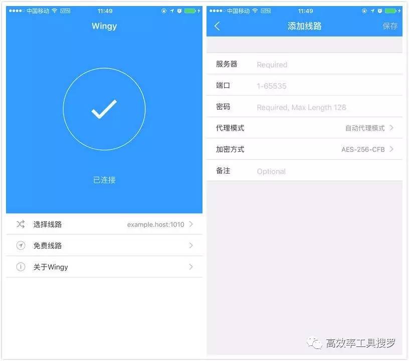 影梭和Wingy 分别是Android 和iOS 的Shadowsocks 客户端。