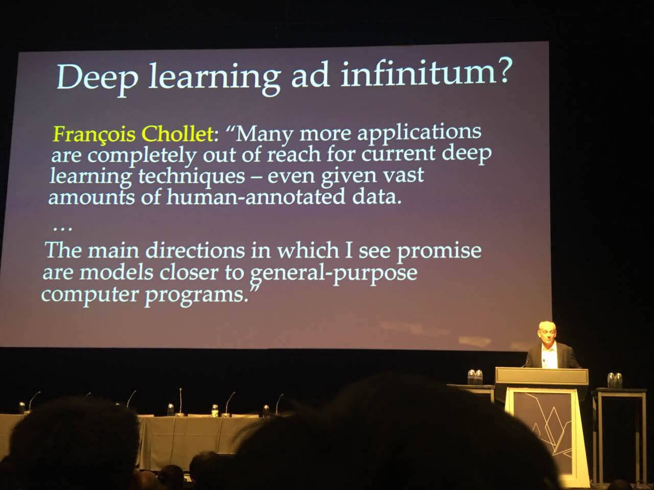 我主持的“机器学习姐妹会议”会场,是IJCAI的一个“福利”,报告的工作都是来自UAI、ICDM等会议的最佳论文和最佳学生论文,第一个报告介绍了Thompson采样应用到强化学习带来的渐进最优性,我听得入神都忘记计时了。其他报告介绍了处理概念漂移的记忆方法、基于实例的推理新进展、开放世界推理数据库、深度学习参数服务器进展、异步Gibbs采样,涉及机器学习多个不同领域,非常精彩。
