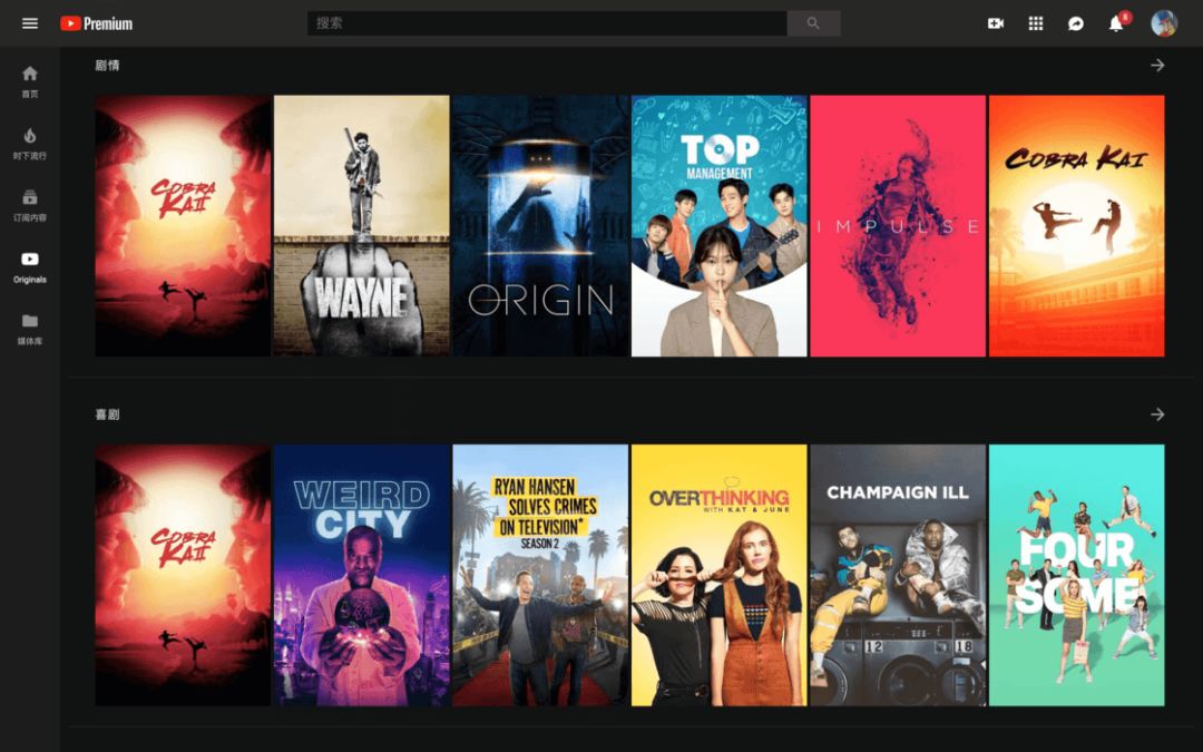 和 Netflix、HBO 等流媒体平台一样,YouTube Originals 是 YouTube 给会员专门提供的影视剧集的流媒体,也有不少和 YouTube 知名频道合作的内容。