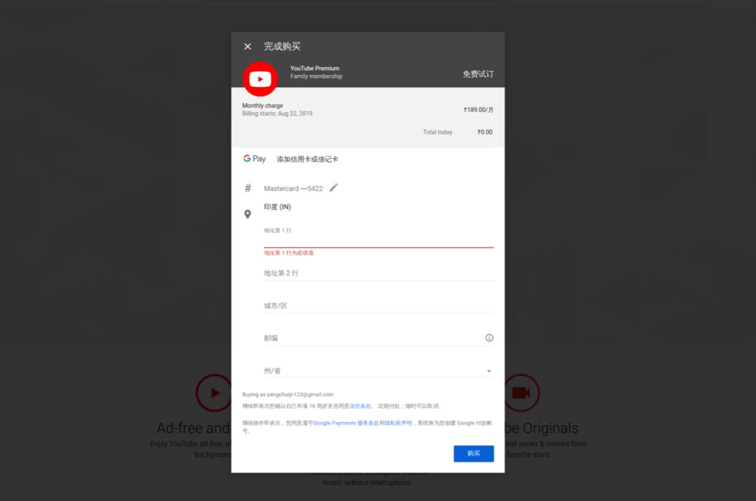 YouTube Premium 对付款方式要求不严格,国内支持外币的信用卡基本都是 OK 的,比如 Master、Visa 等等,第一个月还能免费使用。