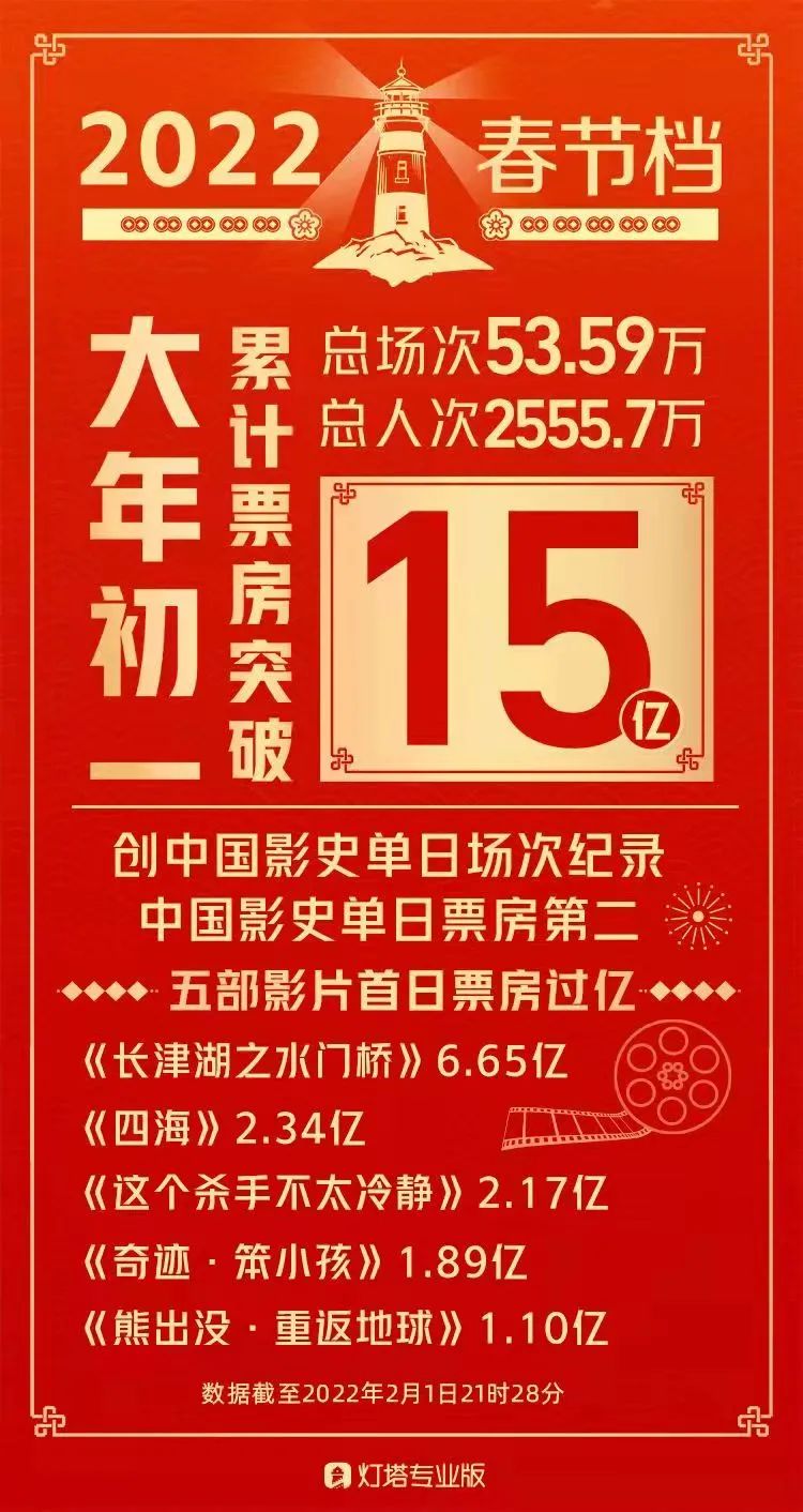 前日大盘以15.08亿的成绩收官,位列史上第二,虽然相比去年的17.36亿,下滑了13.2%,但去年初一有相对特殊性:前年疫情春节期间影院关门,新片和观众积攒的过年看电影热情于去年春节爆发,才有了史上最火爆的春节档。而如果与疫情前2019年初一的14.58亿相比,今年的表现基本持平,甚至可以说,在今年仍然有局部疫情爆发、影院存在小范围关门歇业的情况下初一的票房成绩并未受到很大的影响。