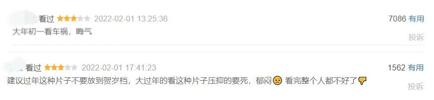 而在今年,《水门桥》提供了这种观影体验,《奇迹》也对观众的情绪有所触动,但口碑排名目前垫底的《四海》,则是不太符合春节观影氛围的代表,在影片的豆瓣热评中,有人吐槽“大过年的看这种片子,压抑、郁闷,看完整个人都不好了”。这种观影感受,直截了当地体现在了豆瓣5.6分的评分上,相较于春节档其他影片,谷底的位置十分稳固,这也会直接影响后续影片的票房走势。