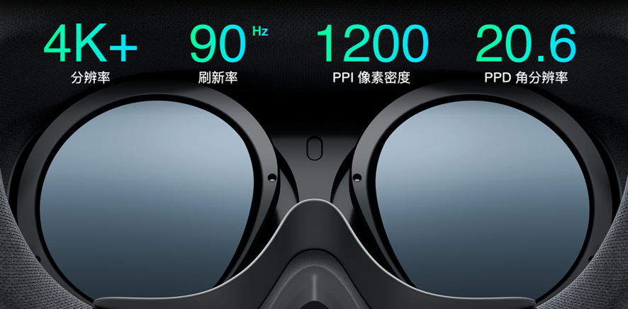本次PICO 4采用的是业内接近顶配的双眼4K屏幕,并拥有双2.56英寸显示屏、单眼分辨率2160*2160、90Hz的屏幕刷新率的超清晰度体验,直接将头显的屏幕显示效果带到了4K+水准,PPI达到1200,显示效果极其细腻。其105度的超大视场角(FOV)更是让用户能够身临其境。