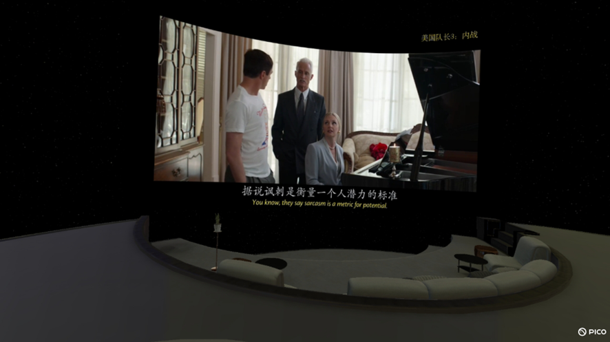 想象一下,在PICO多人影院的沉浸式VR巨幕空间面前,你左边坐着十年未见的大学同学,右边坐着远在海外的高中球友,大家一起边看边聊,为每一次进球欢呼打call,激动不已。
