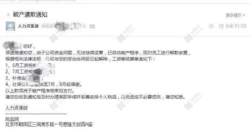 尚品网内部下发破产遣散通知 关联公司成立清算组