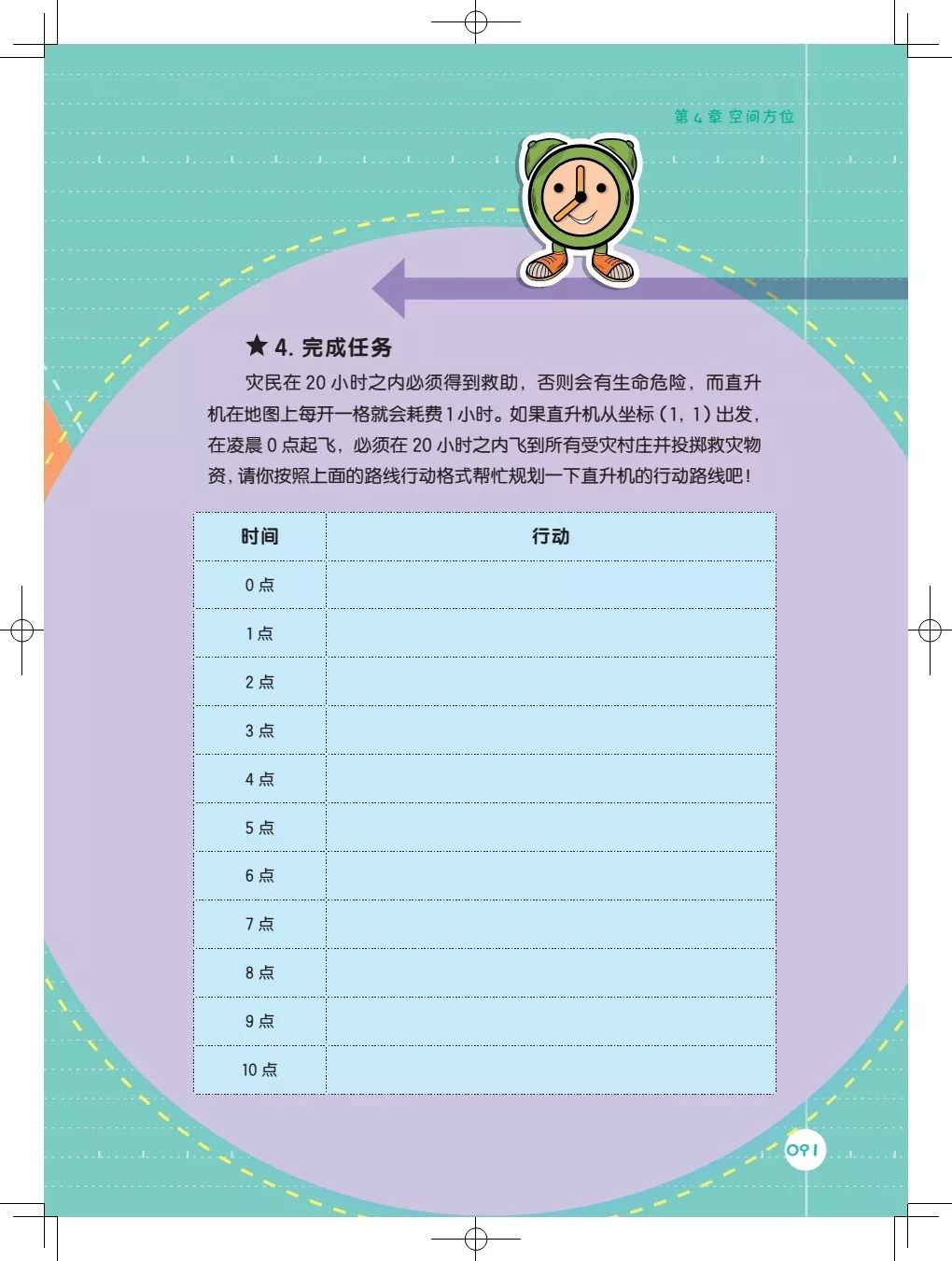 然后是运送物资,因为交通中断,只能通过直升机运输救灾物资,如果迟了灾民就会有生命危险。但是灾区有好几处,因此孩子需要合理规划直升机行动路线,在燃油耗尽之前将物资送达所有灾区。这就是一个选择最优解决方案的问题。