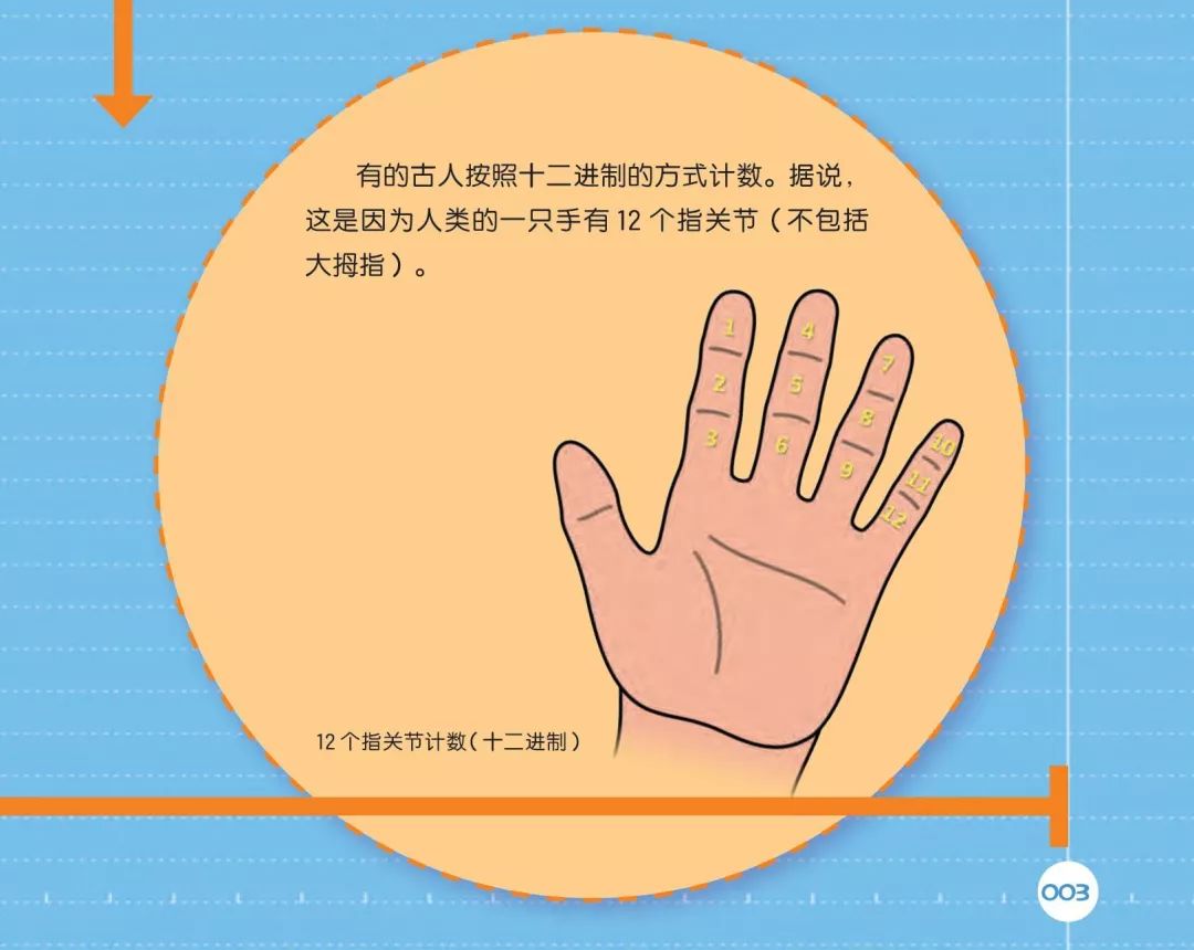有的古人会用12个手指关节计数,那就是从1到12的十二进制。