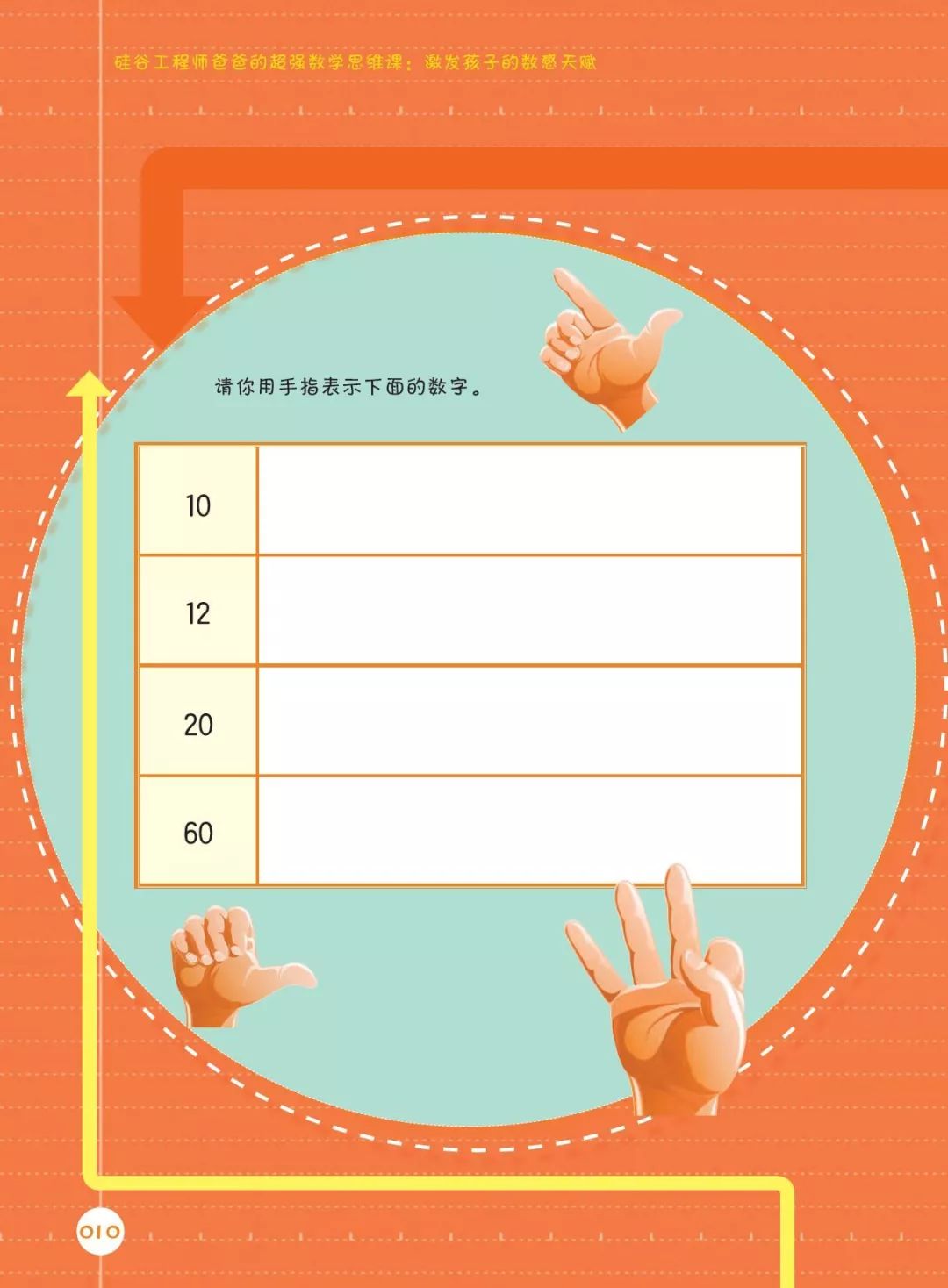 这里面就训练了孩子的思维能力。比如说摆放数字“20”,其实是一只手摆12,另一只手摆8,代表的就是“12+8”这个数学表达式。如果我们直接问孩子“12+8”是多少,每个人都能答得出来。但是像题目这样用具体的应用场景展现出来,让孩子自己去挖掘“12+8”这个表达式的含义,就很有难度了,因为他们得理解题目的框架和内容,才能做出正确的判断。这也是数感训练最核心的要求!